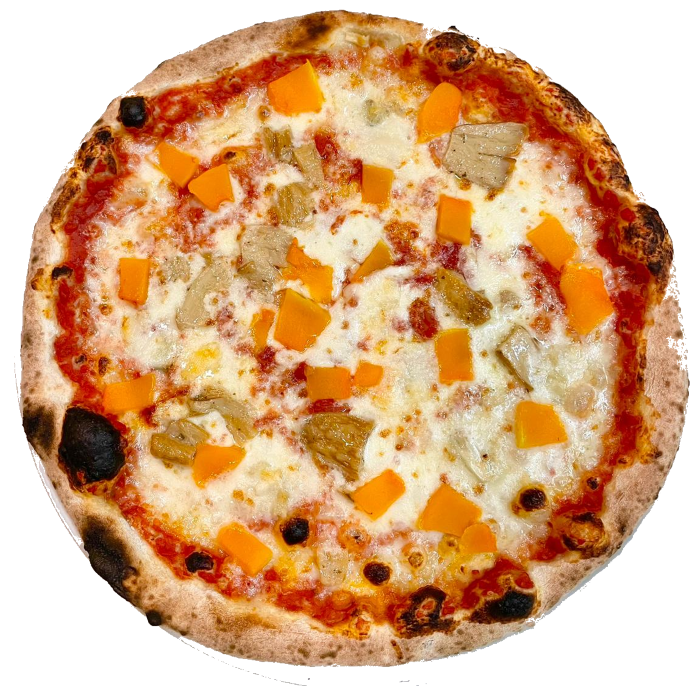 Mozzarella, crema di zucca, guanciale, porcini, zola DOP